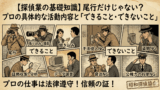 ドラマの探偵とは大違い?探偵業法で認められた「尾行・張り込み」のリアルな実態と、裁判で使える最強の報告書とは。警察ではない彼らが「できること」と「絶対にやらない違法行為」の境界線を弁護士が解説。【詳細は下の記事をご覧ください】