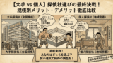 「大手は高い?」「個人は怪しい?」探偵選びの永遠のテーマに終止符を。組織力の大手か、職人技の個人か。失敗しないための判断基準と、それぞれのメリット・デメリットを比較し、あなたに最適な依頼先を診断。【詳細は下の記事をご覧ください】
