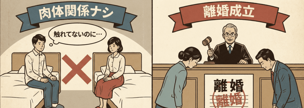 | 判決の決め手 (法的根拠) | 「婚姻関係の破綻(固定化)」 発端が異性問題であれ性格の不一致であれ、長期間別居しているという客観的事実により、**「もはや元の夫婦関係に戻ることは不可能」**と認定される。 |