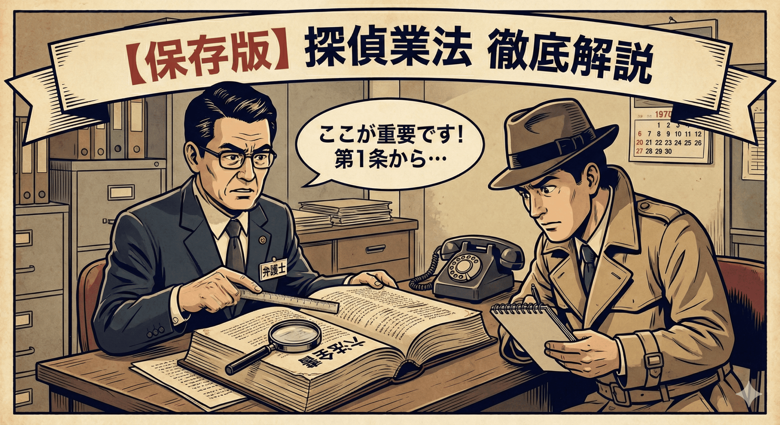 • 解説: 昔は無法地帯だった探偵業界にルールを作り、悪徳業者を排除して、あなた(依頼者)を守るために作られた法律だということです。